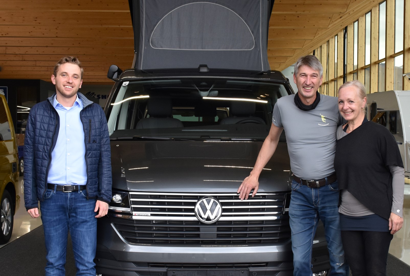 Nach mehreren Beratungsgesprächen bei verschiedenen Autohäusern hat die lange Suche nach dem passenden VW-Bus bei uns in Reutte mit dem lagernden California 6.1 ein glückliches Ende genommen. Für den 55-Jährigen ist der Bus einfach der Wahnsinn. Wenn man schon eine so große Investition macht, dann müsse der Bus von unten bis oben passen und das hat der California Ocean Edition TDI samt professioneller Beratung geschafft. Und es stimmt: Der Erfolg von The Bullishow basiert vor allem auf der extremen Bulli-Spezialisierung und der jahrelangen Erfahrung des gesamten Teams. Eine große Auswahl an Lagerfahrzeugen kann vor Ort getestet und ohne lange Lieferzeiten direkt abgeholt werden. „Wir haben uns den Bus vor zwei Wochen im Schauraum ausgesucht und nun stehen wir bei der Auslieferung“, bestätigt Monika.
